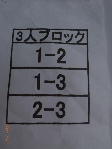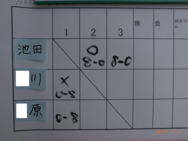 今日の男子シングルスのドロー数は、キャンセルも出て3名で総当たり。