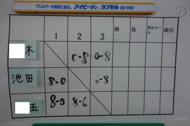 男子シングルスのドロー数は6名で、2グループに分け総当たり。