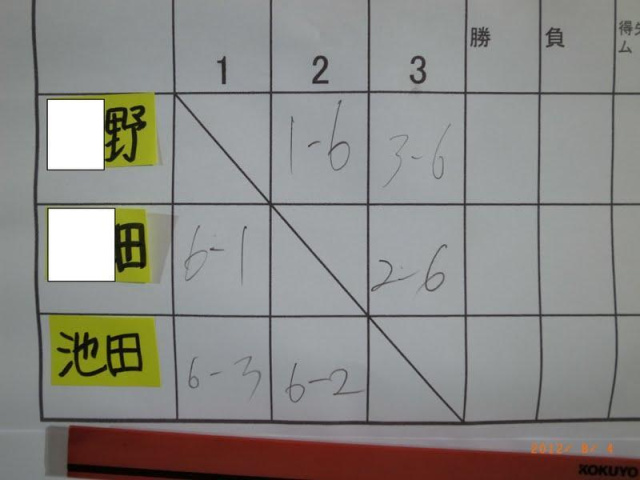 男子シングルスのドロー数は6名で、2グループに分け総当たり。