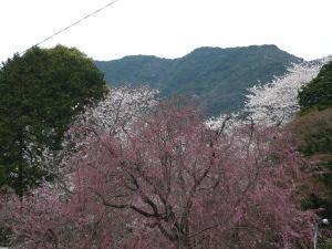 画像は、ソメイヨシノと少し梅の色っぽいしだれ桜です。