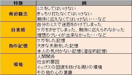 イップスの原因の特徴を画像で添付しているので参照して下さい。