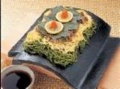 載せておきますが、要するに熱い瓦の上に茶そばをのせて