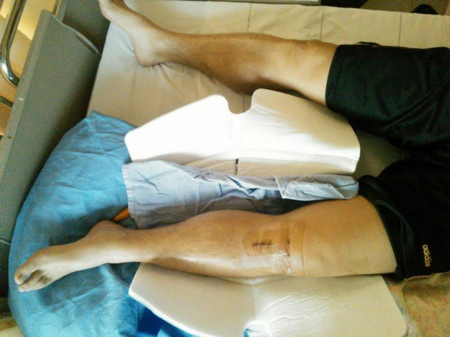 3年前に痛めた靭帯と半月板。とうとう歩くのにも支障をきたしてしまい、今月頭に靭帯手術と半月板の痛んでいるところを手術した。