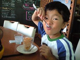 お土産やによってお土産を買い、1号がアイスが食べたいというので喫茶店のようなところでアイスを食べました。
