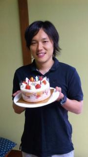 昼飯の時にケーキでみんなでお祝いしました!(^^)!