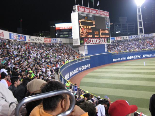 ということで、今日はベイスターズファンとしてではなくて、一古田ファンとしてハマスタに行ってきました。いつもと違ってレフトスタンドのポール際に座りました。もちろんベイスターズファンということがわからないようにしましたよ。そういうのがわかったら周りのヤクルトファンは気分悪いですからね。ヤクルトの選手の応援歌はだいたいわかりましたが、一部歌詞がわからないのもあったので、ヤクルトのファンサイトの歌詞を印刷して持って行きました。でもよく見ると、稲葉、池山、ペタジーニっていつの選手???ほとんど使えませんでした(笑)。