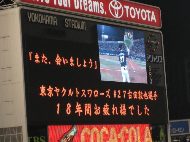 試合終了後、ささやかな引退セレモニーがあり、スワローズファンはもちろん、ベイスターズファンからもねぎらいの拍手がおきました。