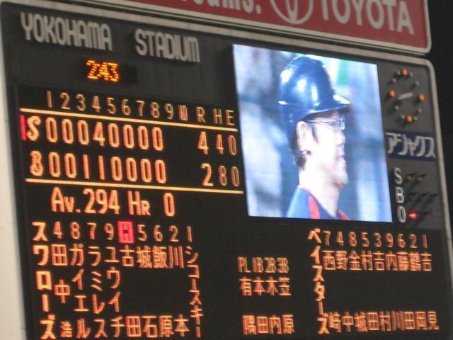 9回裏、ベイスターズは一打サヨナラのチャンスという展開になりましたが、結局ヤクルトの勝利で古田兼任監督の引退に花を添えました。