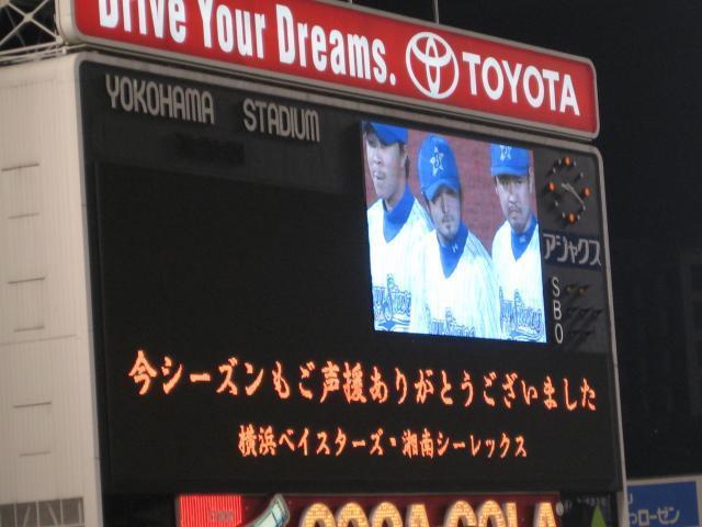 ハマスタ最終戦恒例のセレモニーで大矢監督が挨拶をし、今シーズンが終了しました。