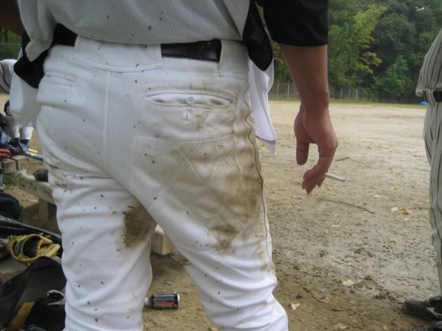 2試合目、キャッチャーをやってドロドロになった、ぶあっとさんのケツです。セクシーショットでしょ!?やっぱりこのお兄さんごっついですね〜。ほんと、グランド状態が悪いなかでよく試合をしましたね。ぼくも練習着のパンツがドロドロになってしまい、宿で洗濯しました。でも次の日までには乾かず、翌日は下半身、冷たかったです。でもスラパン履いていったから、ちょっとましだったです(笑)。