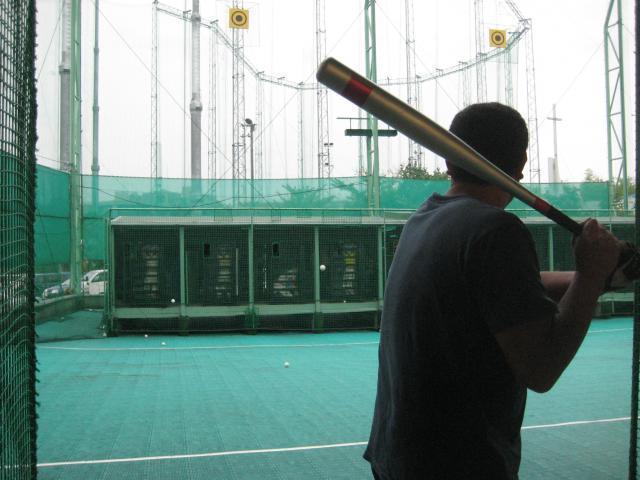 バッセンに行ったときの、ぶあっとさんです。140km/hのケージで打っています。さすがにぶあっとさんでも140キロには苦戦していました。それにしても、1こしかない左打ち打席が故障って、最低でした・・・。写真にも写っていますが、あの上のほうにあるHRの板に、ポロ松さん、よく当てましたよね〜。すごいです。たまたまですかね〜?(笑)