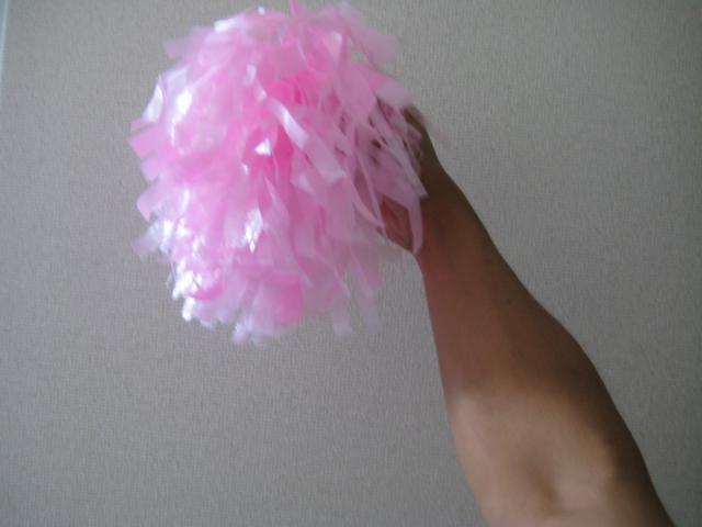 せっかくヤフドの「女子高校生デー」でもらったんで、自宅でポンポンを降ってみました。女子高生の腕ならよかったんですが、もちろん、ぼくのきったない腕です(笑)。