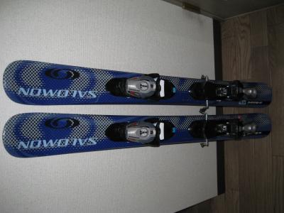 サロモンのファンスキー(ショートスキー)で、長さが95cmです。ベイスターズカラーで非常に気に入っています。こういうタイプの板はストックは使いません。もちろん、普通の長さの板も持っていますが、昨シーズンからこういう短い板のスキーを始めました。キャリアに載せられる板の数も限られているので、これだとトランクに積めるからいいです。長い板とは体重の乗せ方が違うので、この板で初めて滑ったときは転んでばかりでしたが、しばらくしたら、難なく滑れるようになりました。
