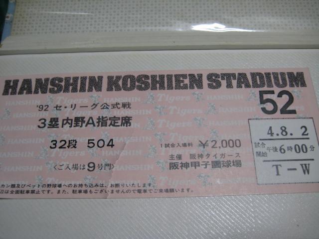 ちなみに写真は初めて甲子園に観戦に行ったときチケットです。優勝が決まった試合のチケット、外野自由席なんで、日付しか入っていないんですけど、ちゃんととってあったはずなんですが、見当たりません。実家においてきちゃったのかな。
