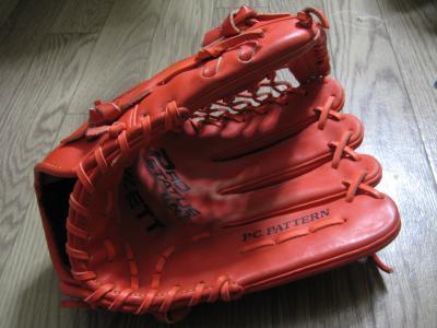 前にも日記に載せた外野手用グラブ。これもZETTのプロステです。試合でも使ってて、だいぶ手になじんできました。でも、まだちょっと硬いです。