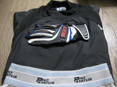 ウィンドシャツと、ぼくは左打ちなので、右手用のバッティンググローブ。そして、下のほうにちょっとだけ見えるのは・・・そう、スラパンです。プロステのスラパンってあるんですよね。一応、新品ではないので、全体像をお見せするのは公序良俗に反するといけないから、ウェスト部分だけにしておきます(笑)。でもスラパンはやっぱりミズノのが一番いいとぼくは思います。