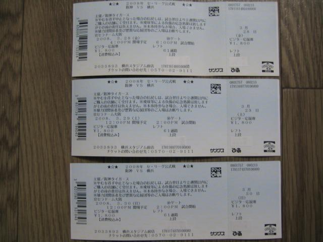 京セラドーム大阪で行われる阪神対横浜の開幕カード3連戦のチケットです。