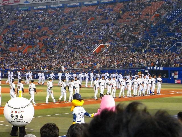 ハマスタの開幕戦なんで、整列です!