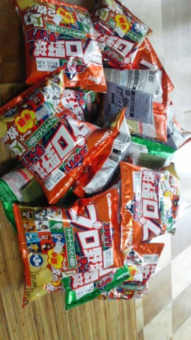 カルビーのプロ野球チップス半額だったのでまとめ買い[e814]。これだけ買えば巨人の選手入ってるっしょ(笑)。