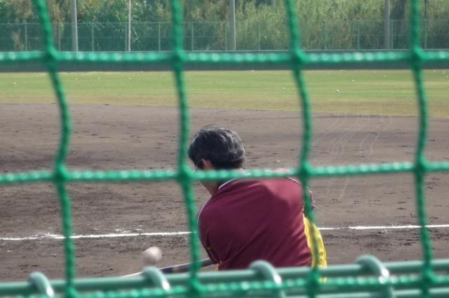 久米島で横浜との練習試合の日、2軍練習場でトスバッティングする小坂選手。