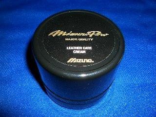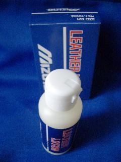 でも、長く使っていると外側も乾燥してひび割れてくるので、それを防ぐために、外側に、MizunoPro Leather Care Creamを。これは付属のスポンジで。サラサラのオイルで、全くベタベタしない。それでいて、革をしっとりとした良い感じに仕上げてくれる。