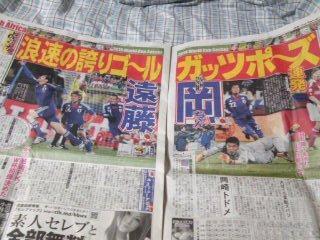 日本が負けたときは、阪神・真弓監督が一面の新聞でその1便のみで発行終了〜でしたが…