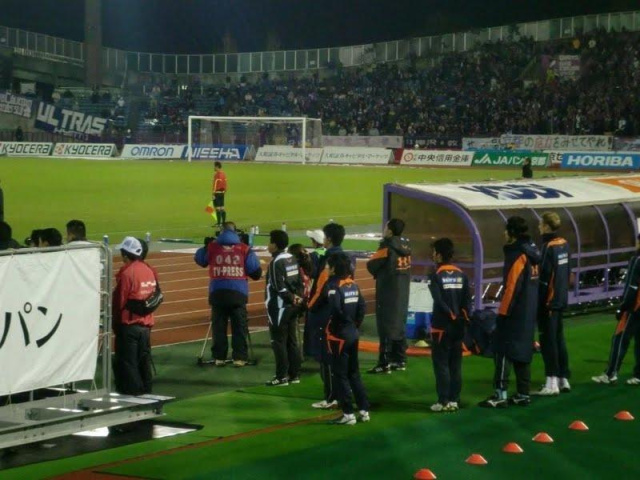 控えの選手もピッチが気になるらしく・・・アップしつつ・・・