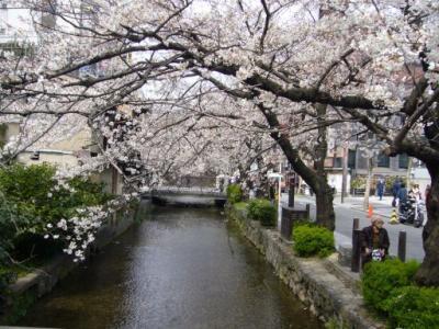 高瀬川沿いの桜も、昨日、今日の暖かさで満開です。