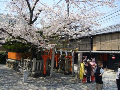 昼の祇園ネオン街を突っ切って、辰己神社へ立ち寄ると
