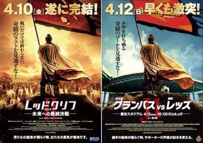 名古屋グランパスエイトは4月12日の浦和レッズ戦に向けて4月10日公開の映画「レッドクリフ Part� −未来への最終決戦−」(配給:東宝東和/エイベックス・エンタテインメント)と共同で名古屋地区でのキャンペーンを展開します。(名古屋グランパス公式HP)