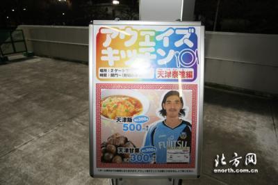 当记者到达川崎等等力球场的时候,就看到了一副很特别的宣传画。川崎队主力中后卫寺田周平在海报的左端作为 形象代言人,而海报的左边这是一碗类似于中国盖浇饭的日式快餐,和剥好的栗子。说这幅海报特别,主要是这两种食品的名称很有意味。快餐被称为“天津饭”, 而栗子则被称为“天津甘栗”。 (天津…HP)