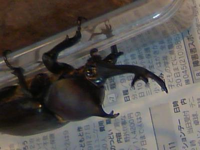 背中をナデナデしていたら、ついつい・・・と逃げるカブトムシくん。