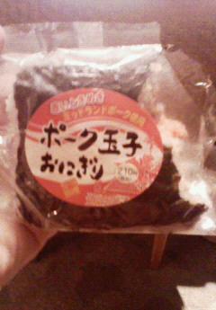 厚焼き玉子と豚肉をご飯ではさんであるんです。