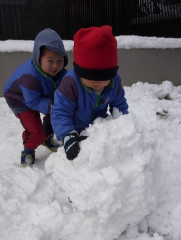 今朝もはよから、息子達は雪だるまをつくっています。