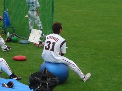 試合前、投手陣が練習していたセンター付近。