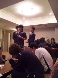 写真はリラックスルームで夜食を食べてるみんな。