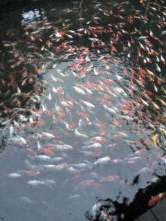 まぁ、せっかく来たのですから観光でもと思い久しぶりの湯布院観光を満喫してきました。中でも圧巻は、鯉でした!1000匹近くの鯉を飼っている池?があるのですが、そこで鯉にエサをやると池の中の鯉がいっせいにエサに群がってくるのです!それも、ものすごい勢いで!!!1000匹全てが向かってくる訳ではありませんが、数百匹の鯉が群がってエサを食らう姿は一見の価値あり!ですよ。もし、湯布院に行く機会があれば寄ってみてください。場所は、金鱗湖(きんりんこ)の近くです。分からなければ、観光案内に聞けばすぐ分かります!現地では結構、有名!!!