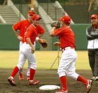日南キャンプで東出&梵の二遊間コンビが話題をよんでいる模様でカープファンにとって嬉しい材料です。2人は練習からプライベートの時間まで常に一緒にすごしている様でこれも互いの空気、動きに慣れる為のブラウン流の指導との事。これまでの2人は、プライベートの時間は別々に過ごしていたらしいがこれにより2人の距離がいっきに縮まったようです。12球団1の二遊間の荒木&井端超えを目標に日々前進している2人!東出が明言したように「2人でゴールデングラブ賞をとる!!!」この日も間近に感じる1カープファンでした!