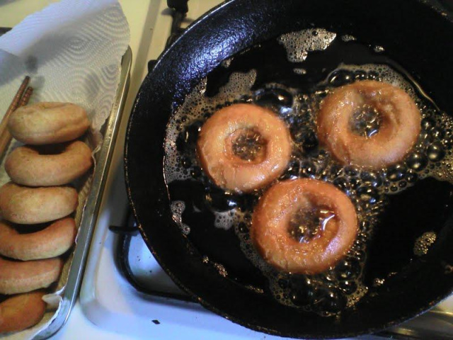 やや強めの中火で揚げるとざっくりしたアメリカンなミスタードーナツ風、