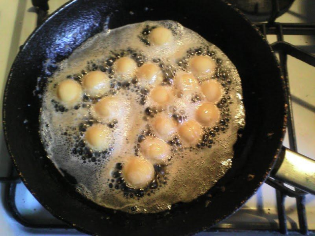 やや弱めの中火で揚げるとコロンとした和風、はらドーナツぽくなる