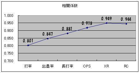 ちなみに、どっかでXRやRCの相関はMLBでもこんなもんだと聞き及んだんですが、実際にそうなんですかねえ?