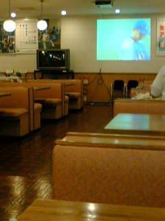 夕食をとりながら、プロジェクターでの観戦。