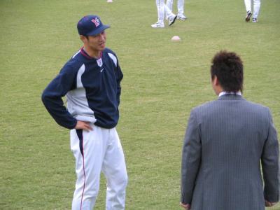 練習場で初めてみかけたのは木田国屋のオーナー(違)、木田画伯。監督も忙しければ秘書も慌ただしいなぁと思えば、前田ヒロ発見。スタッフも気になるってのは、やっぱりおいらも追っかけの部類ですか?(失笑)