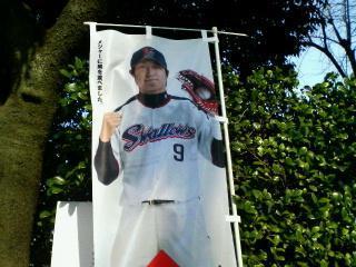 信濃町から神宮までの道筋にヤクルト選手(若手ばかりでつまらんけど)のぼりがちらほら〜〜…
