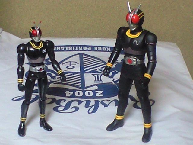 フィギュアーツの仮面ライダーBLACK(小さい方)とレジェンドライダーの仮面ライダーBLACK(大きい方)と並べてみた。