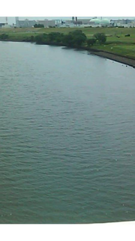 ふと写真撮らなきゃって止まって見たら荒川に吸い込まれそうな高所恐怖症の感覚(°□°;)しかも揺れてるし~[e190]