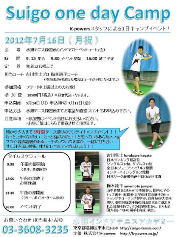 今回、7月16日(月、祝)に水郷インドアテニスアカデミーにて、