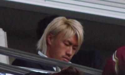 折角の新しいヘアーも寂しげなスタンドの鈴木選手。