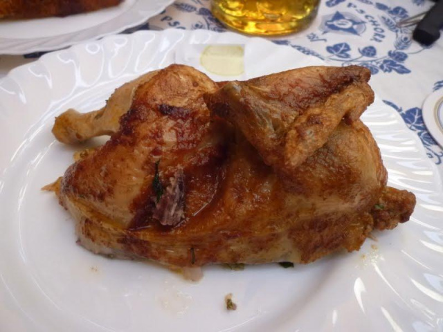 ビアとチキンです。おいしかった!ビアは1リットル。重いから両手で飲んでます。