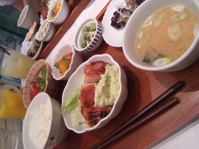 メインは鶏肉のグリル焼き、アボカドタルタルソース添え